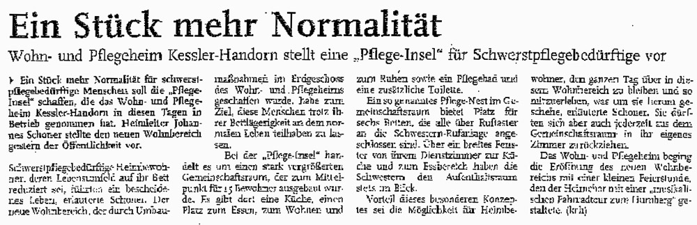 "Ein Stück mehr Normalität" titelte die Rheinpfalz einen Beitrag zu unseren Pflegeinseln. Zum Artikel.