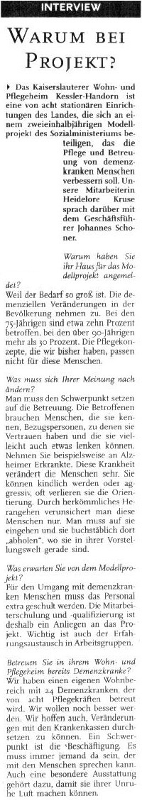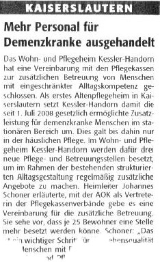"Mehr Personal für Demenzkranke ausgehandelt" berichtete die Rheinpfalz im Januar 2009. Zum Faksimile.